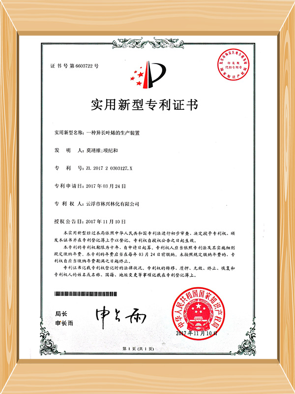 Company Patent and Award Certificate