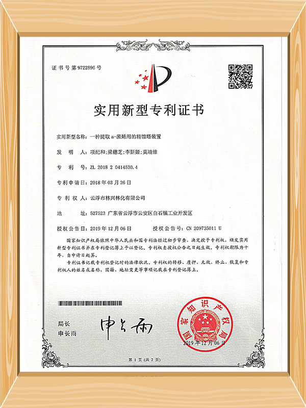 Several major products and technologies of the company to obtain patents and quality certificates.